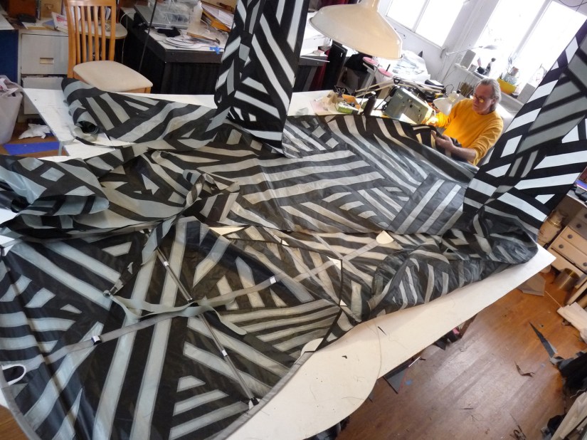 I made several of my own designs just from the photos – first with plastic, then with sewn rip-stop nylon and bamboo spars. It took me two years before one actually flew. The experience of watching it climb to the perfect high angle apex and just stay there glued me to kite making. I’ve been making kites ever since.
