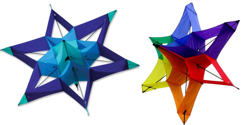 Goodwind kites are quite different from others. Among others, they include the Rainbow Aerial Star, Asteroid, Starflake, Fighter Kites, the Super Nova, and the PopKan kite (created by my son, Todd). He also designed the Boa’s, a convertible wrist strap. Goodwinds are known for the curved edges, as a good curved outside edge reduces drag and enables a kite to fly at a higher angle.