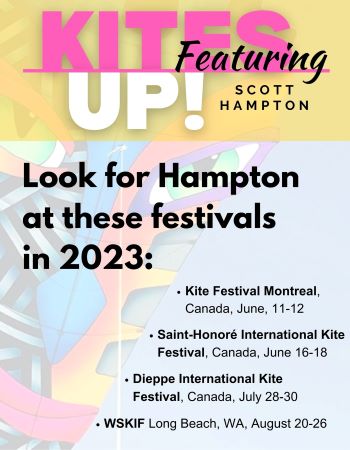 Absolute wonder! You can’t help but be filled with it every time Salt Lake City resident Scott Hampton introduces a new creation. A prolific designer and builder of kites and ground displays for some 38 years, Hampton brings a stunning and unmistakable color palette to everything he makes. I learned of Hampton and his work when he joined Facebook just a few short years ago. While kiting may be the world’s healthiest addiction, it’s clear for Hampton the creative process wins out every time.