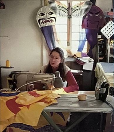 I was a student at UC Berkeley from 1963-67, where I fell in with some friends who liked to produce lavish picnics, with crystal and China, gourmet food, and a couple of kites flying to really decorate the scene. That’s how I first learned something about making kites. Fast forward a few years, it’s Christmas 1971, Chris and I have a year-old baby and no money. I decided to make kites as Christmas gifts for my family. I pinned them up on the ceiling of the living room and they were well received.