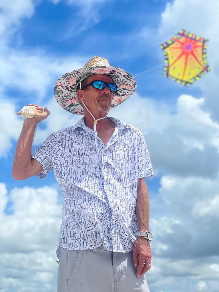 The son of an Air Force officer, Kevin Bayless moved around a lot growing up. He and wife, LynneRae, currently reside in Central Florida, retired. Bayless spent the majority of his career in construction materials sales for new home and custom home construction in addition to engaging in commercial hospitality work for Disney, Universal Studios, several casinos in Las Vegas, and some resort work. His career took him to Southern California, Colorado Springs and Salt Lake City before his pancreas ruptured, forcing him into early retirement. As you’ll learn, LynneRae is primarily responsible for Bayless making kites.